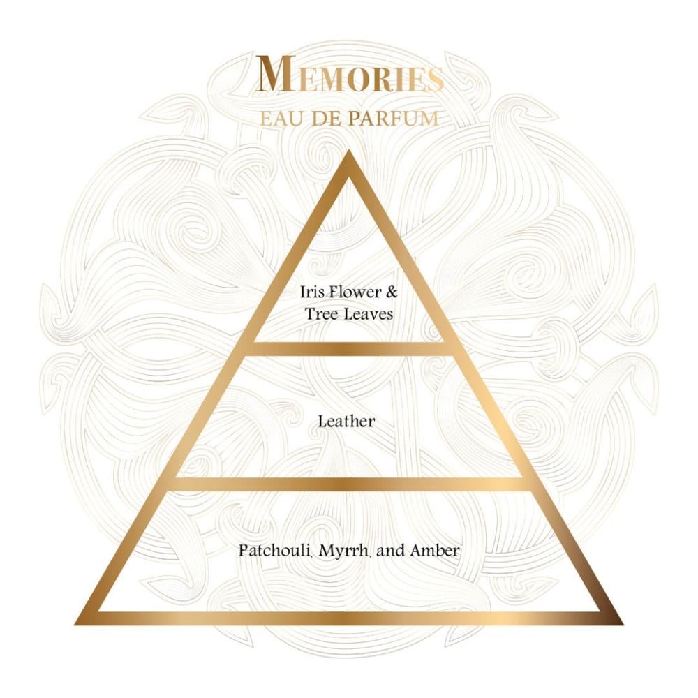Perfume Name: MemoriesType: Eau de ParfumSize: 80mlGender: UnisexFragrance Notes:Top Notes:Fig, Irisتين ، زهرة السوسنHeart Notes:Vanilla, Incenseفانيلا - بخورBase Notes:Leather, Musk, Patchouliليذر - مسك - باتشولي